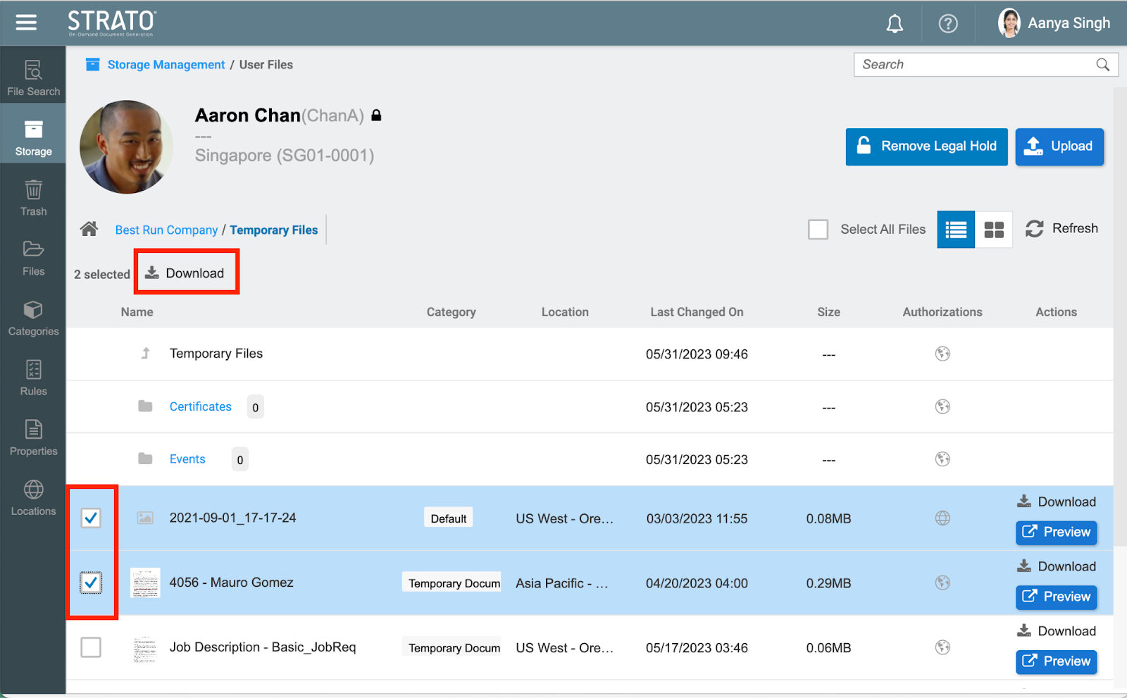 Downloading File/s in Storage Management