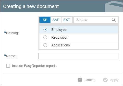 For example, the Employee Catalog is selected to create certificates of employment, tenure, and declaration of employee's roles and duties. The Employee Catalog fetches its fields from SuccessFactors' Employee Central. You can also have an option to add Easy Reporter report/s in your template.