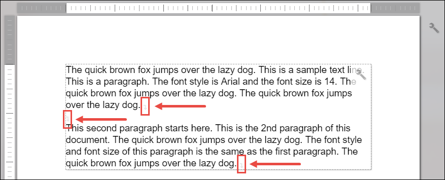 A downward arrow at the end of each paragraph indicates that it is the end of the paragraph. It also indicates a carriage return. This helps you track and locate the beginnings and ends of your paragraphs. Here is an example:
