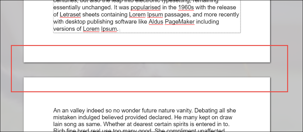 This page is separated from other pages. The header, footer, and background from other pages will not be applied in this newly added page. This new page will still be in continuous page format. A separate page is indicated if there is a space between two pages.