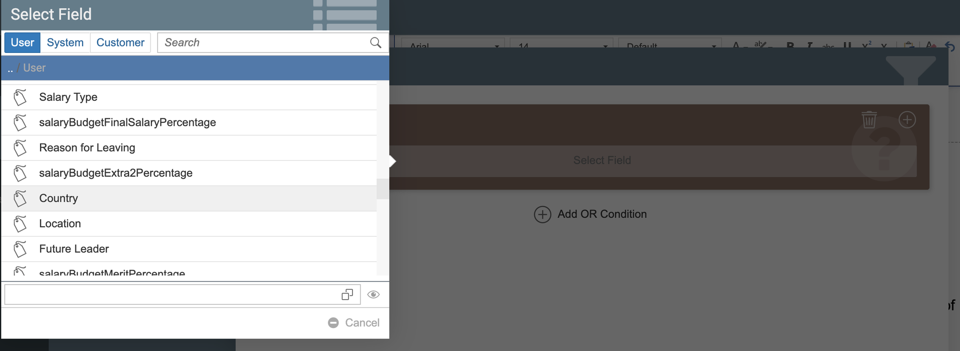- Enter the value to compare to the selected field.