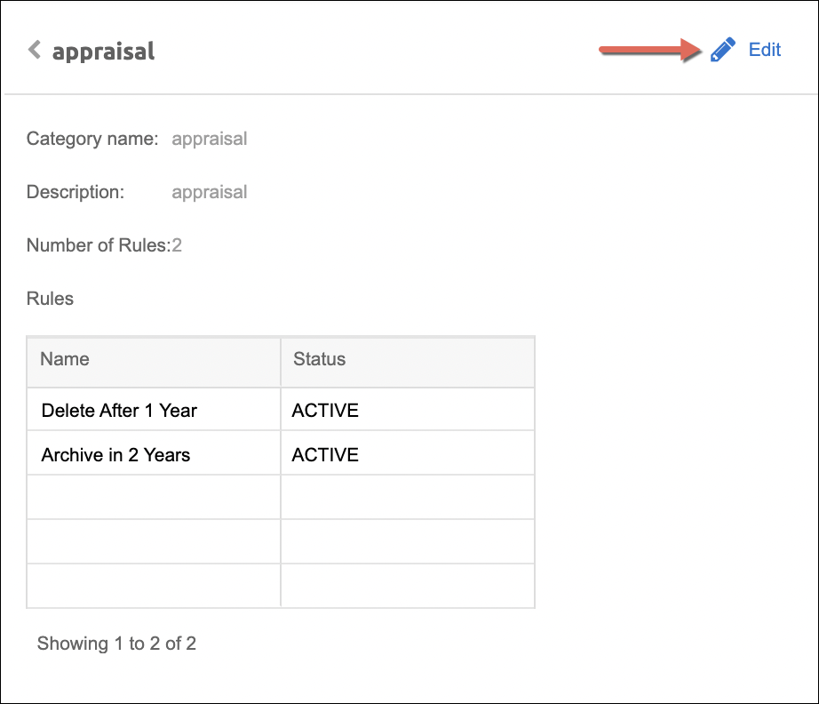 - Name of each rule attached to the category and its Status
