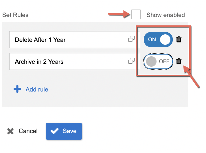 - Show enabled - option to only show enabled rules set to the category (if there are already any set)