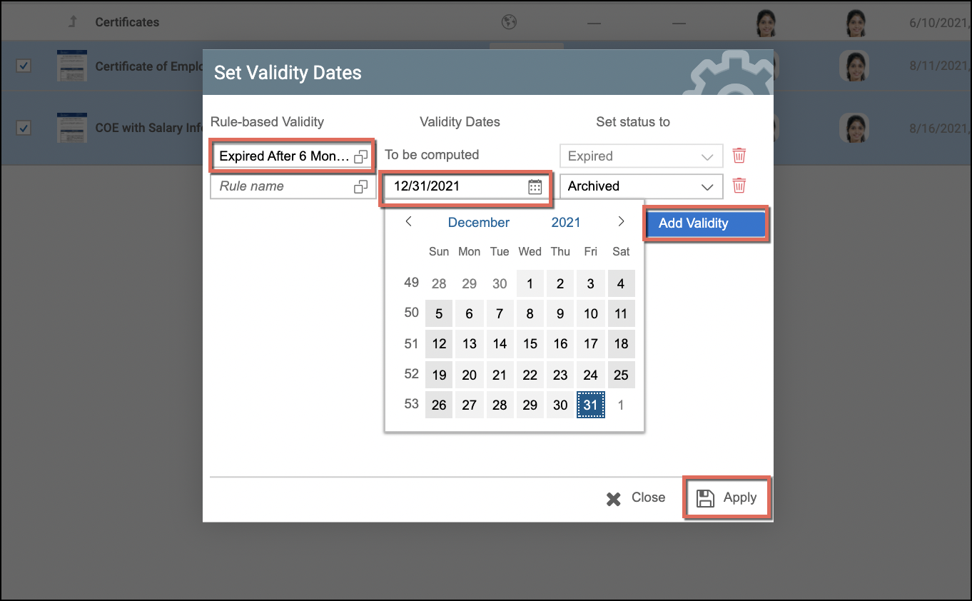 After setting the Rule-based Validity for the multiple documents, simply click Apply.