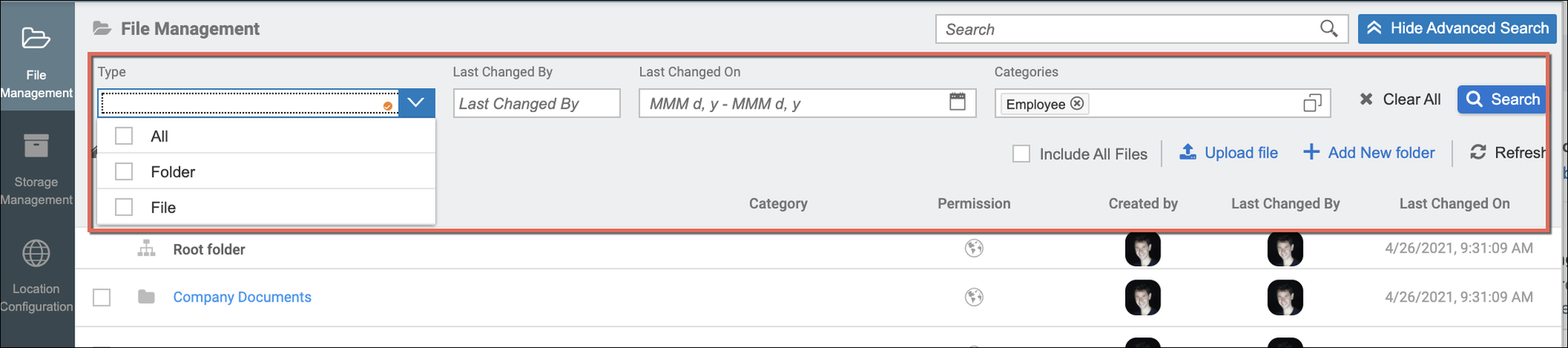 Additionally, there is an advanced search function to further narrow your search of folders and files
