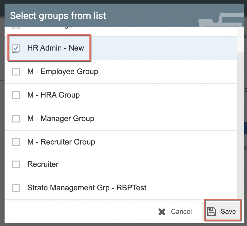 For user groups, the Select groups from List will be prompted where you can select from your group of users that are configured within your User Management. (read: Strato User Groups - User Management)