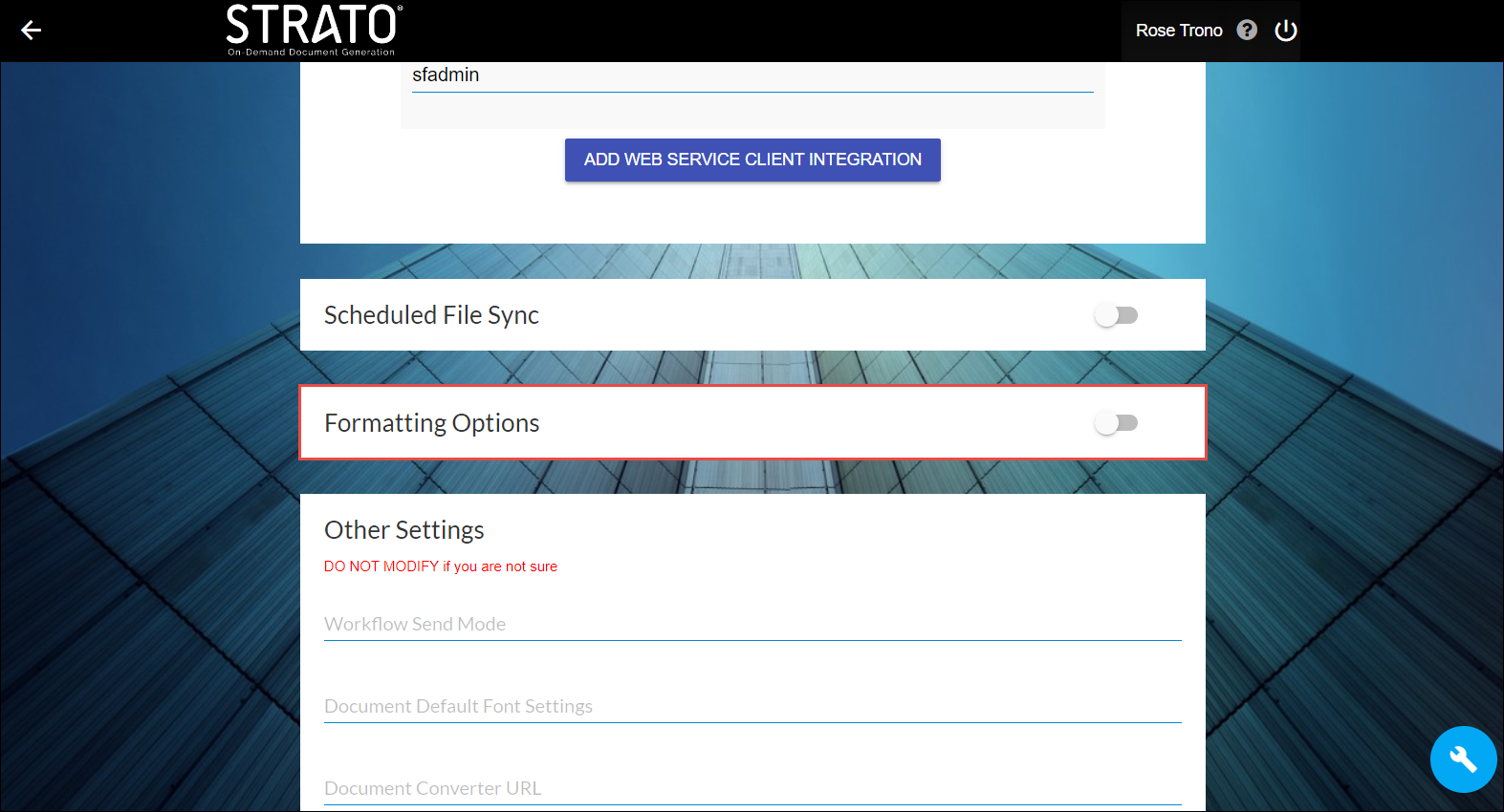 - In your Strato Admin Tool, locate the 'Formatting Options' panel from the target system, and enable the toggle button.