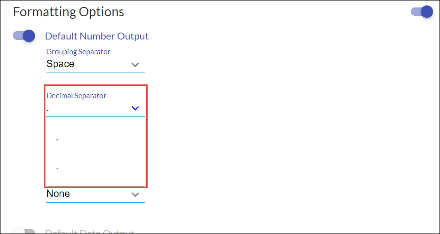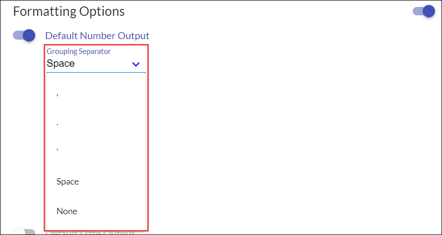 - Choose your preferred Grouping Separator from the dropdown list. Options include a comma, period, apostrophe, space, or none.