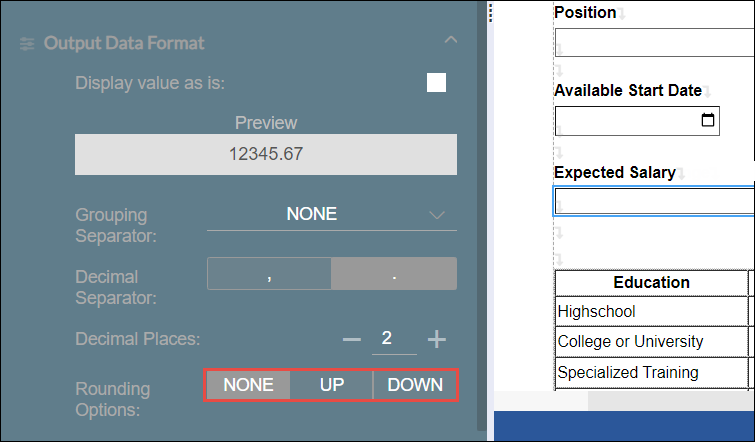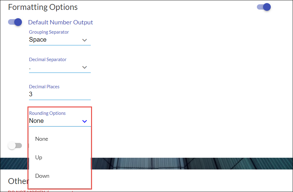 - Regarding Rounding options, choose to either leave the value as is with the "None" option or round up or down.