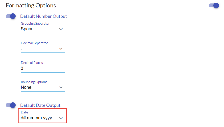 - Turn on the toggle for the field type to format, whether Numeric or Date, or both.