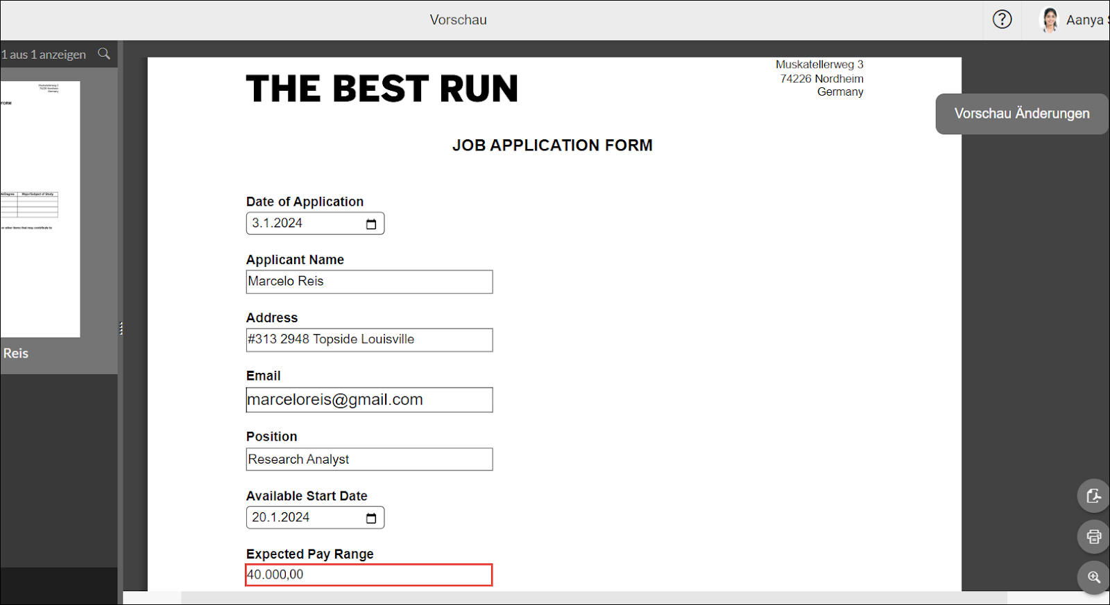 Filling Out a Generated Document (End-user’s browser/device settings: German Format)