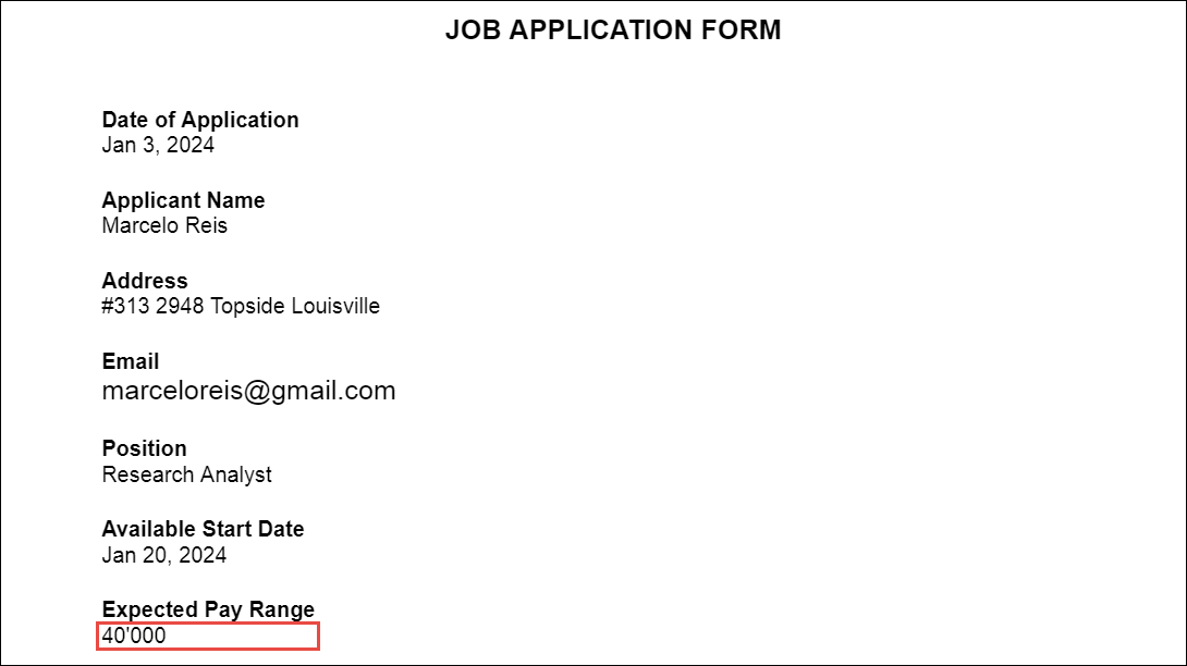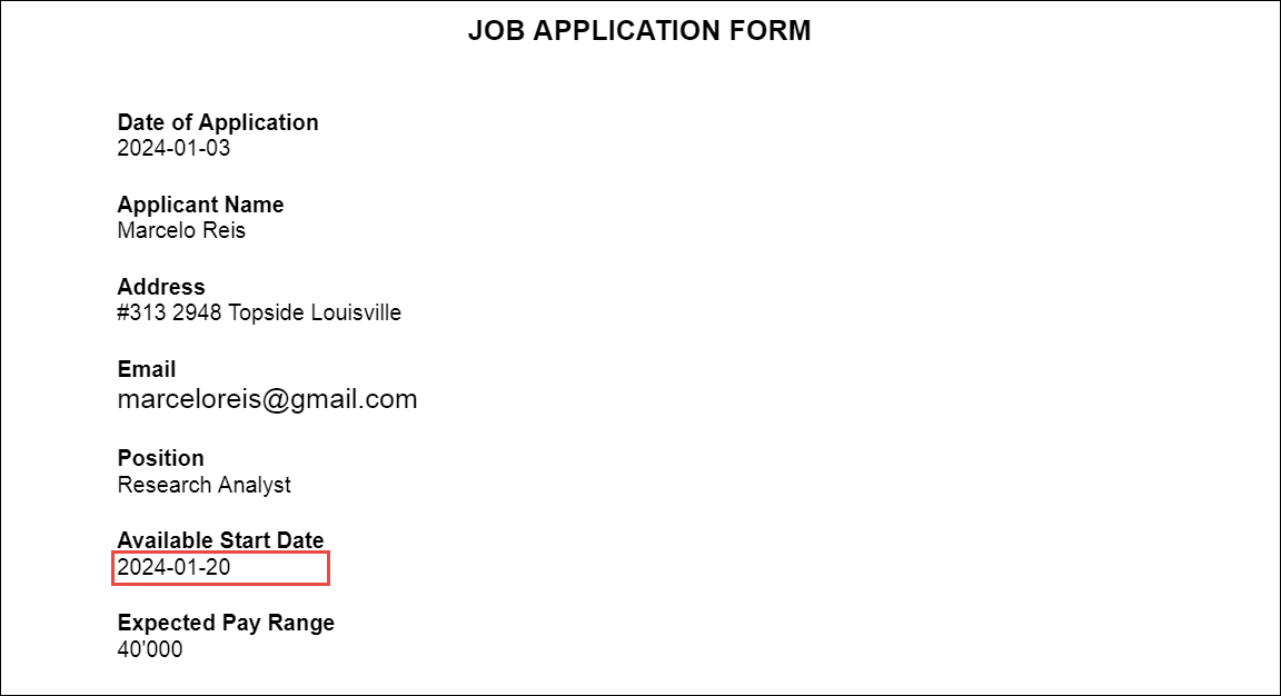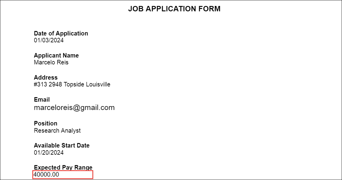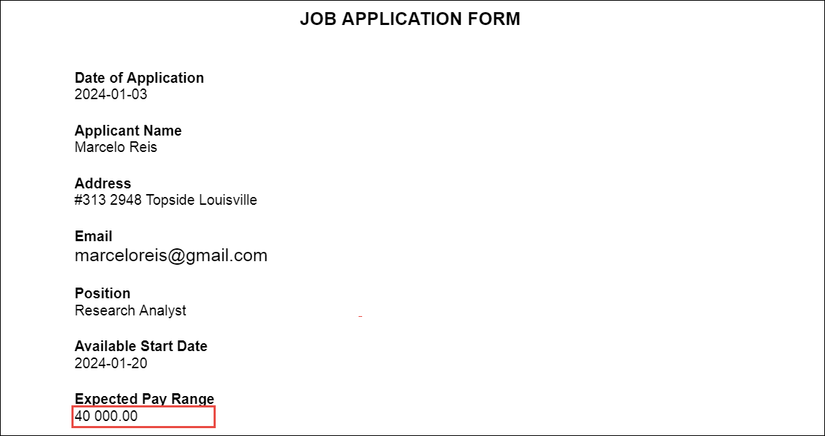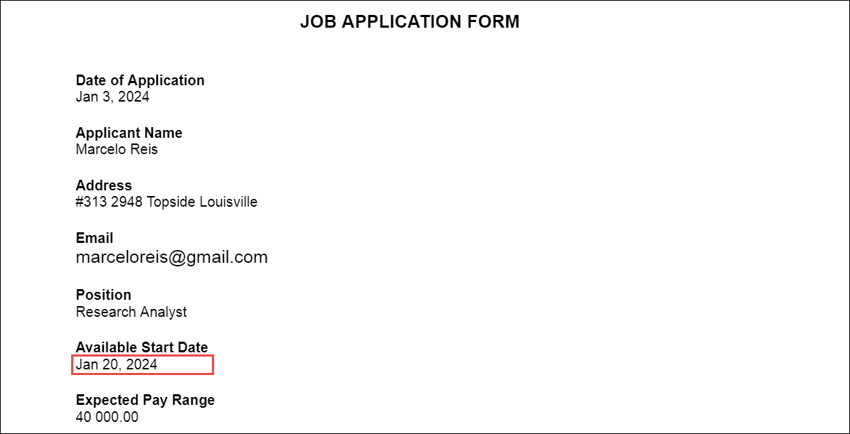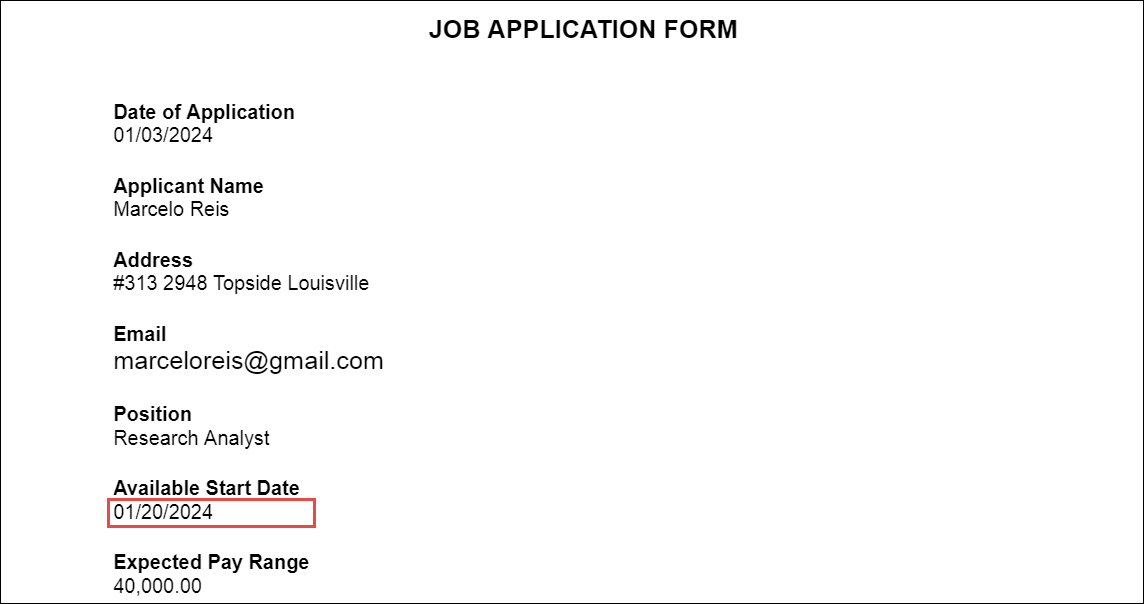 Then, the company sends the Job Application form template to the employee in Germany. The input format is determined by the following scenarios: