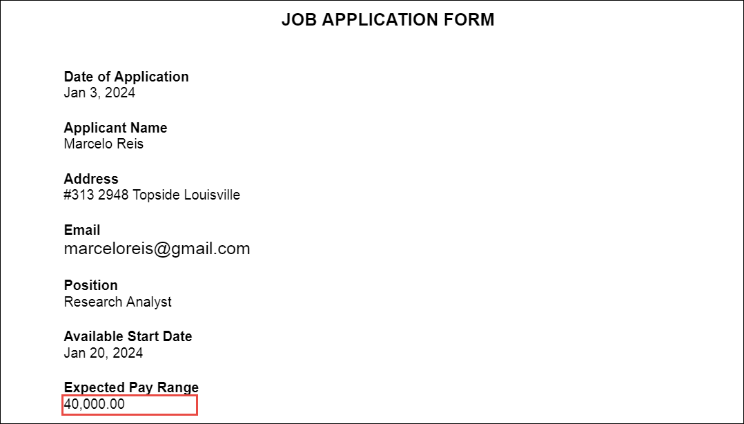 Filling Out a Generated Document - Numeric Input Format: 1,234.56 (Enabled)