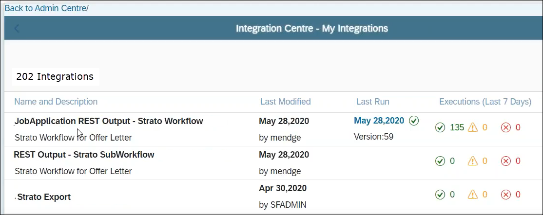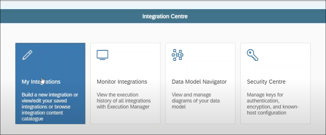 - For this setup, go to: SuccessFactors > Admin Centre > Integration Centre > My Integrations