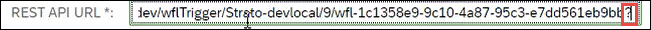 - REST API URL (the Service URL is captured/provided within the Trigger step in the Strato Workflow as shown in the screen highlighted below. Copy this from Strato Trigger properties, paste it here, and add a question mark ? at the end.) Example:
